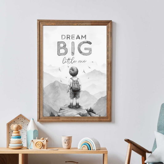 Dream Big Little One Print – Adventure Boys Room Wall Art