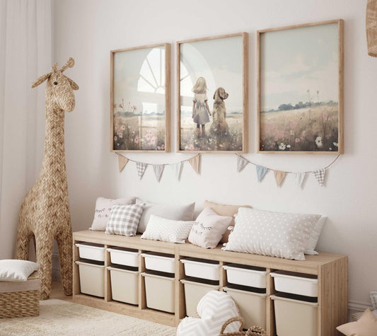 Golden Retriever Nursery Print – Animal Art for Kids Room • Set of 3