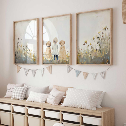 Golden Retriever Wall Art – Dog Nursery Print for Boys • Set of 3