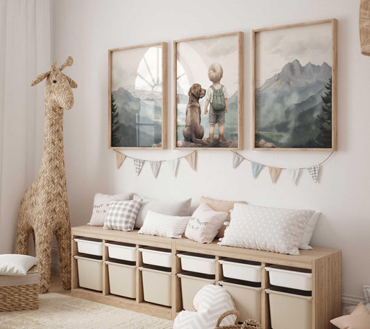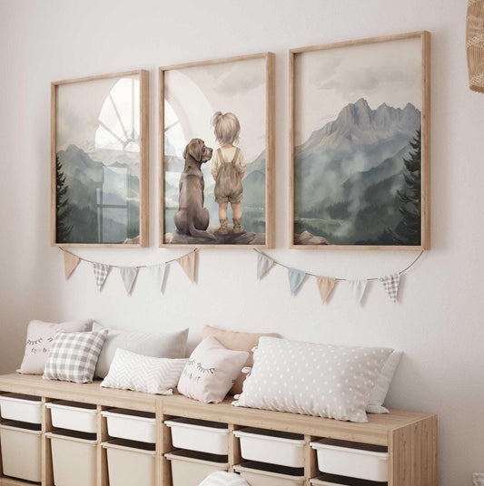 Brown Labrador Wall Art – Dog Nursery Print for Boys • Set of 3
