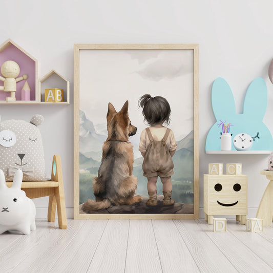 German Shepherd Wall Art – Dog Nursery Print for Girls