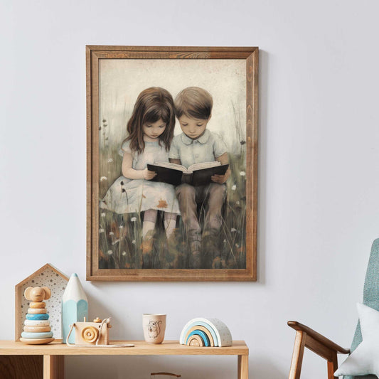 Vintage Reading Print – Educational Toddler Room Wall Decor