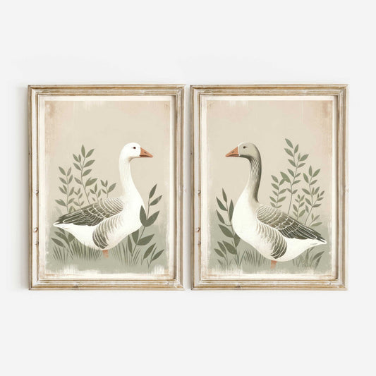 Farm Goose Wall Art – Animal Living Room Print • Set of 2
