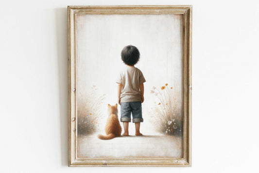 Light-Orange Cat Print – Animal Nursery Wall Art for Boys