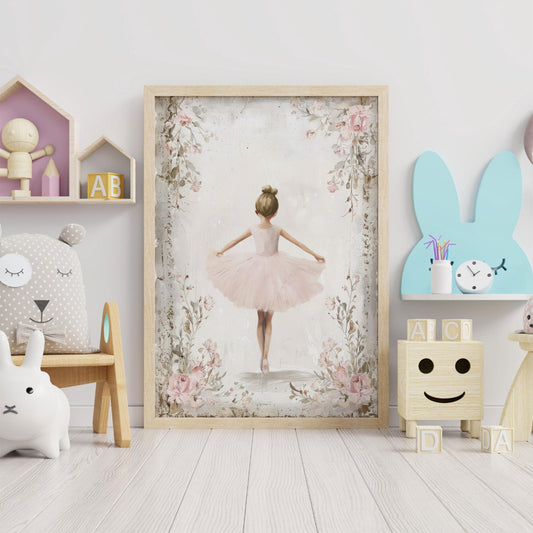 Ballerina Nursery Print – Floral Girls Room Wall Art