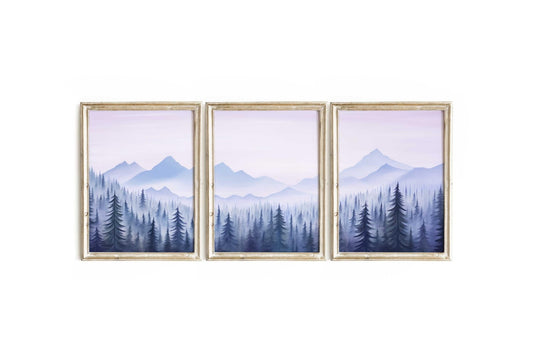 Misty Mountain Print – Nature Boys Nursery Wall Decor • Set of 3