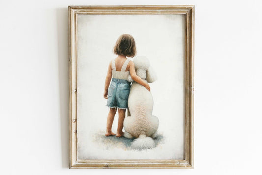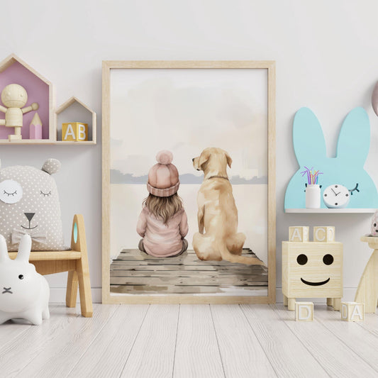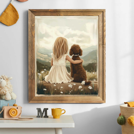 Puppy & Girl Art Print – Dog Girls Room Wall Decor