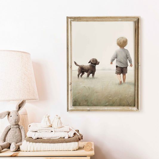 Brown Labrador Wall Art – Dog Nursery Print for Boys
