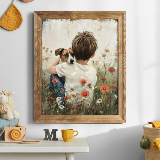 Jack Russell Nursery Wall Art – Boy and Dog Vintage Painting