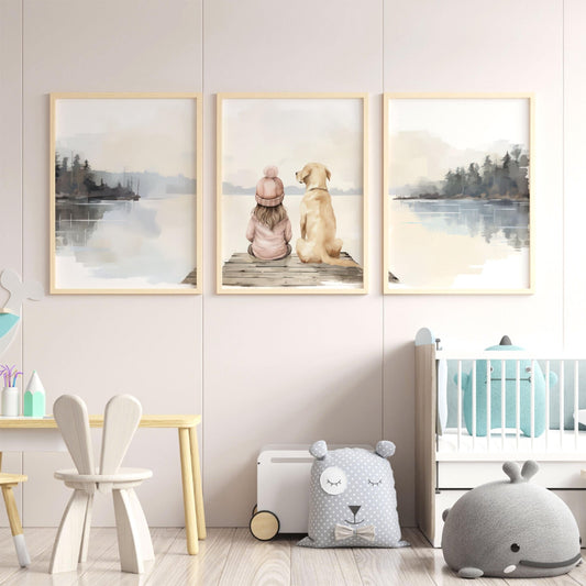 Gentle puppy artwork is ideal for nurseries, creating a calming and playful atmosphere. As children grow, more dynamic illustrations—such as dogs playing fetch or exploring outdoors—remain relevant and age-appropriate. Choosing versatile prints ensures they continue to work in bedrooms or playrooms as your child grows.