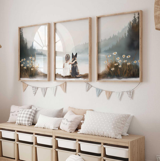 German Shepherd Wall Art – Dog Nursery Print for Kids • Set of 3