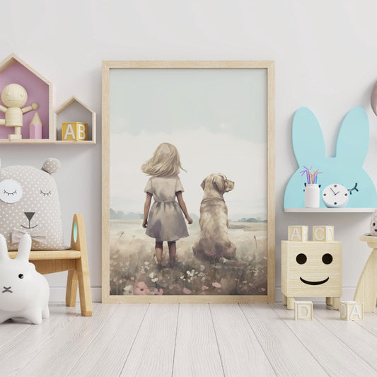 Gentle puppy artwork is ideal for nurseries, creating a calming and playful atmosphere. As children grow, more dynamic illustrations—such as dogs playing fetch or exploring outdoors—remain relevant and age-appropriate. Choosing versatile prints ensures they continue to work in bedrooms or playrooms as your child grows.