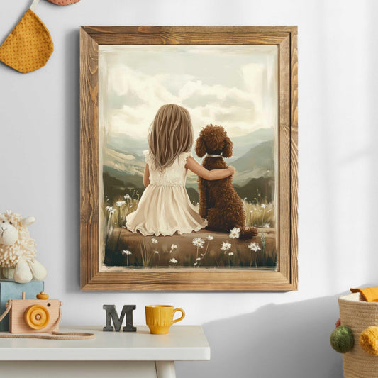Gentle puppy artwork is ideal for nurseries, creating a calming and playful atmosphere. As children grow, more dynamic illustrations—such as dogs playing fetch or exploring outdoors—remain relevant and age-appropriate. Choosing versatile prints ensures they continue to work in bedrooms or playrooms as your child grows.