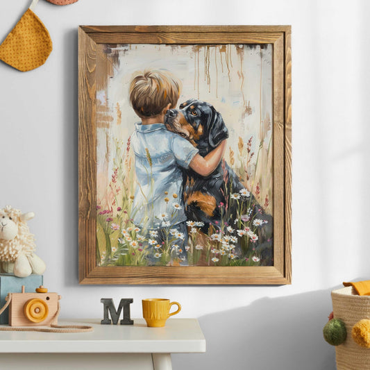 Rottweiler Print – Boy and Dog Nursery Wall Art