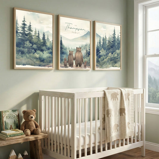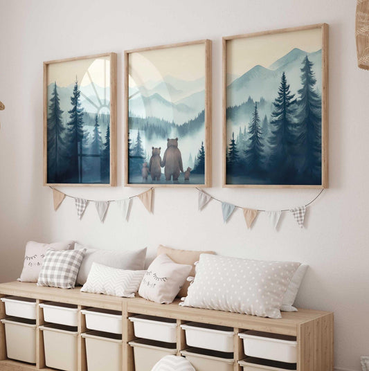 Bear Family Wall Art – Woodland Boys Room Print • Set of 3
