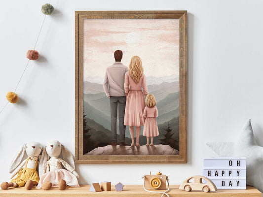 Family Portrait Print – Mom, Dad & Daughter Girl's Room Wall Decor