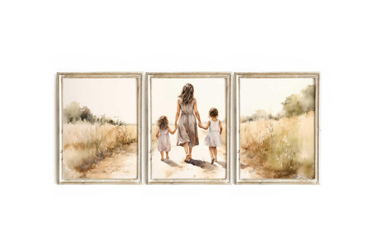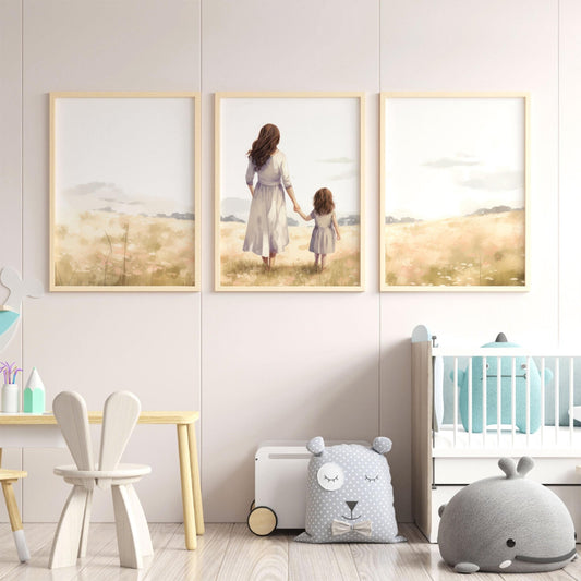 Mother & Daughter Wall Art – Family Girls Room Print • Set of 3
