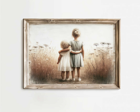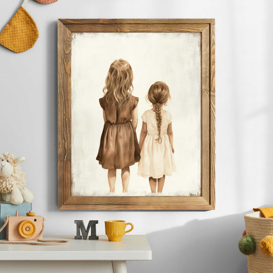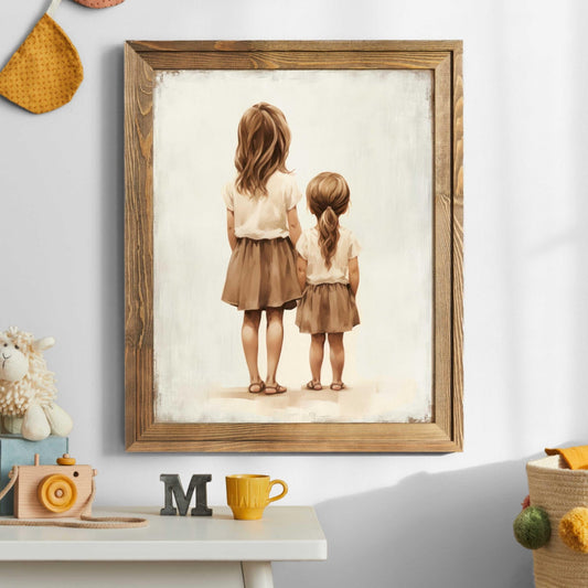 Two Young Sisters Wall Art – Family Shared Room Decor