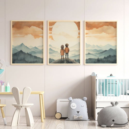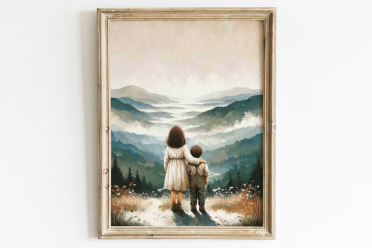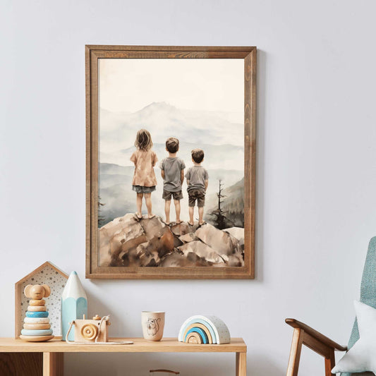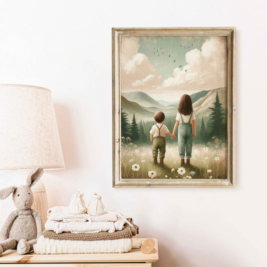 Adventurous Siblings Print – Family Nursery Wall Decor