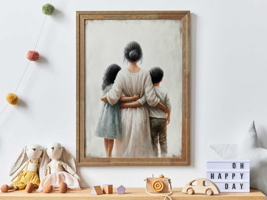 For babies and toddlers, gentle illustrations of parents holding children or siblings playing together create a calming backdrop. As children grow, family-themed prints continue to feel relevant, reminding them of the importance of connection and belonging. This versatility makes the art suitable for long-term use in a nursery or as the child moves to a larger bedroom.
