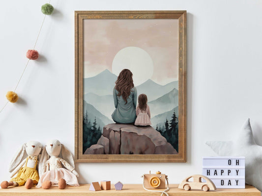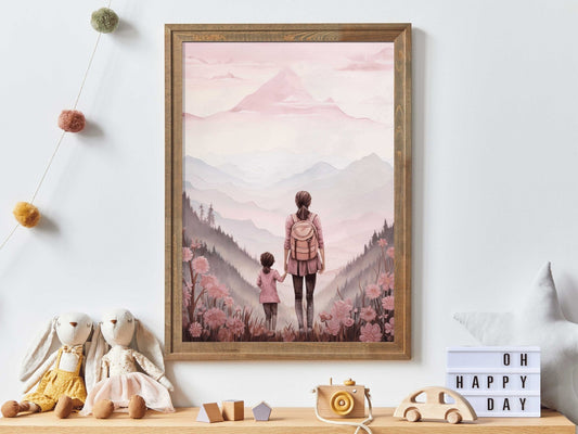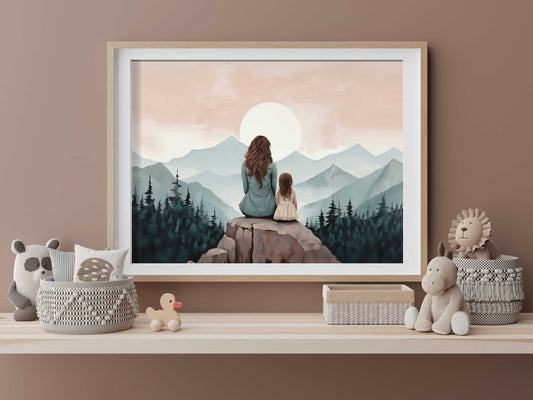 Mother Daughter Bond Wall Art – Family Adventure Nursery Print
