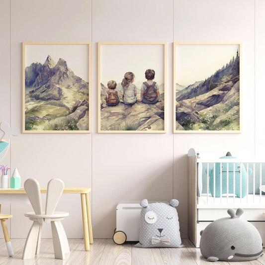 Sibling Adventure Triptych Print – Family Kids Room Wall Art • Set of 3