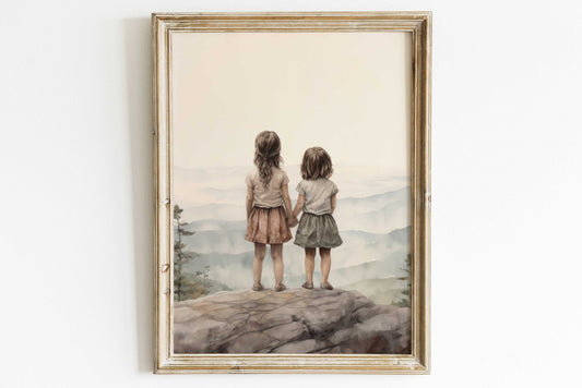 Cliffside Sisters Wall Art – Family Room Print for Kids