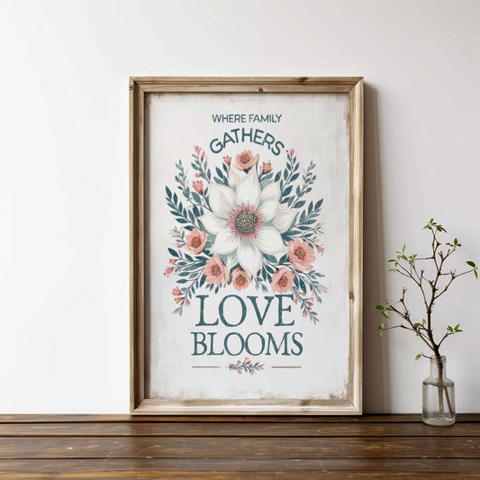 Family Quote Print, Vintage Wall Art, Rustic Kitchen Decor, Floral Design