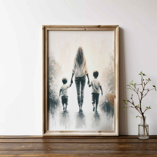 Mother and Sons Print, Brother Wall Art, Family Bond Decor