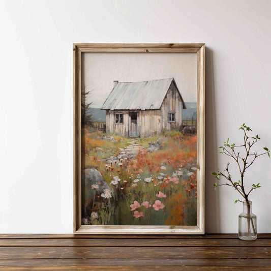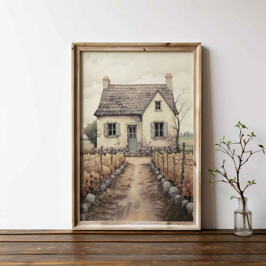 Old House Countryside Print, Rustic Farmhouse Wall Decor, Vintage Art