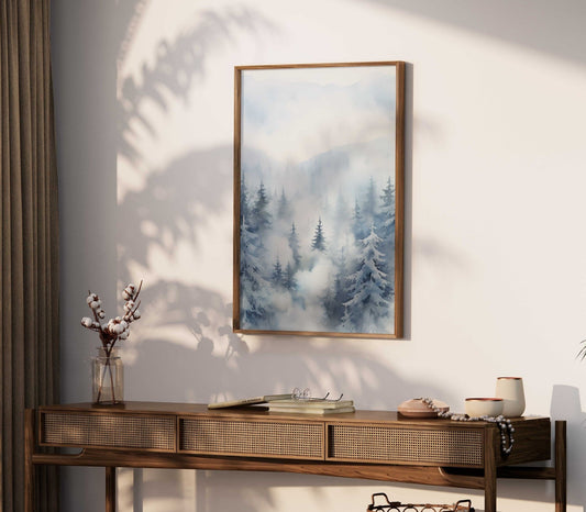 Watercolor Forest Wall Art – Adventure Living Room Print
