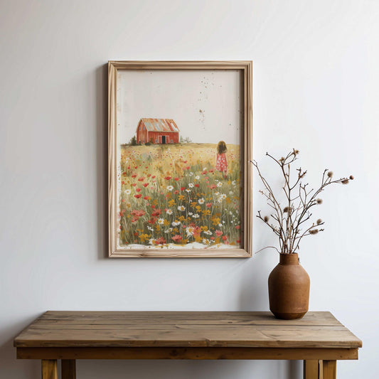Girl in Wildflower Field Print – Farm Nursery Wall Art for Girls