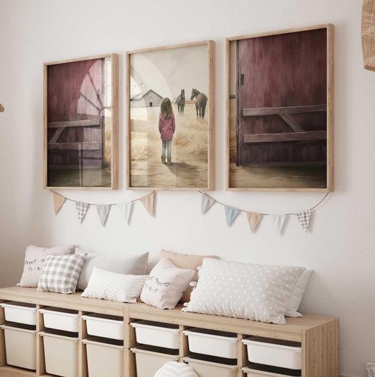 Little Farm Girl Print – Country Nursery Wall Art • Set of 3