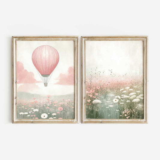 Pink Wildflower Wall Art – Floral Girls Room Print • Set of 2
