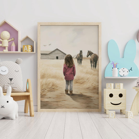 Girl & Horse Prints, Nursery Wall Decor, Farmhouse Room Art