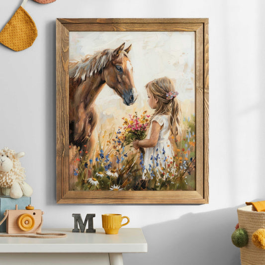 Girl and Horse Wall Art – Equestrian Nursery Print