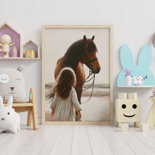 Young Girl Horse Print – Equestrian Nursery Wall Decor