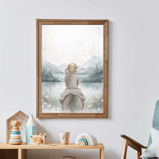 Blonde Maiden and Horse Wall Art – Equestrian Girls Room Print