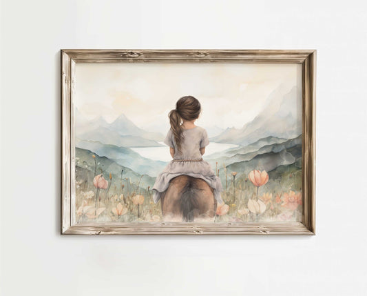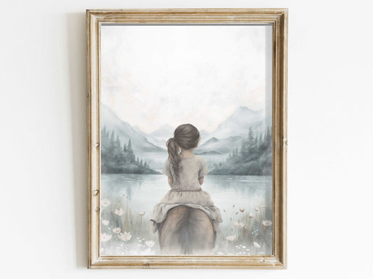 Girl and Horse Wall Decor – Equestrian Girls Room Print