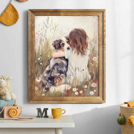 Australian Shepherd Wall Art – Dog Nursery Print for Girls