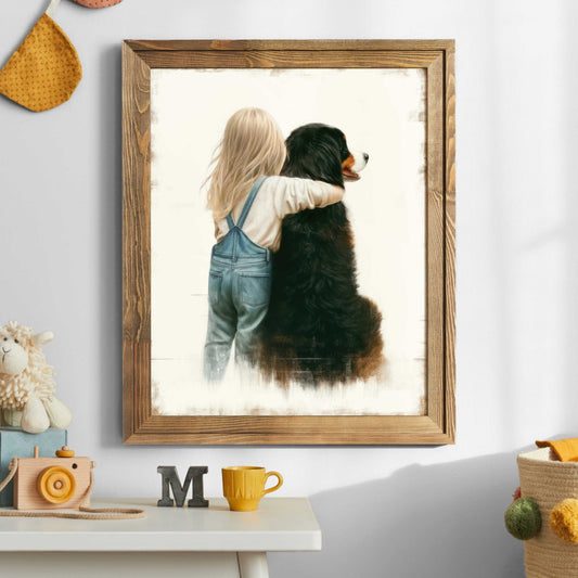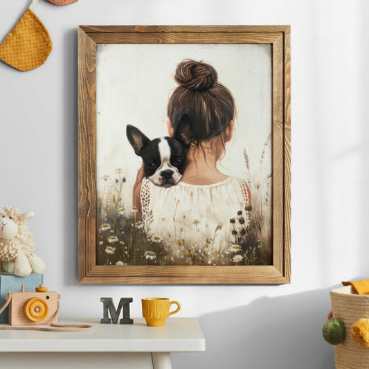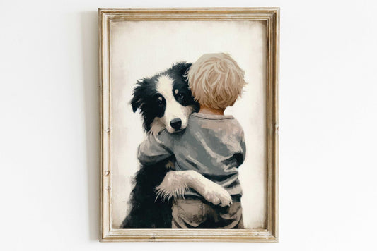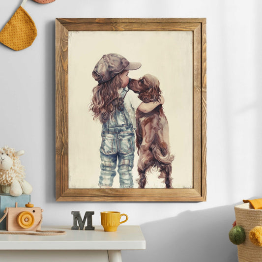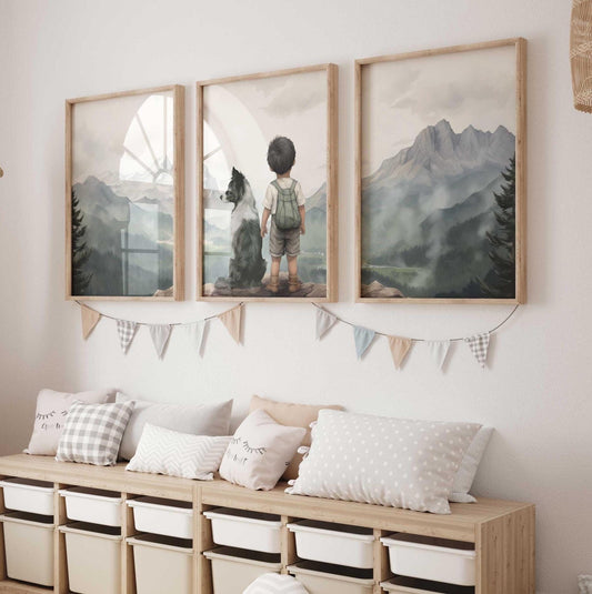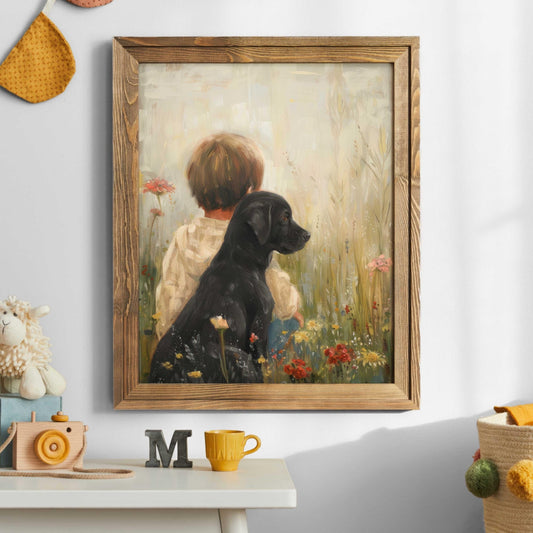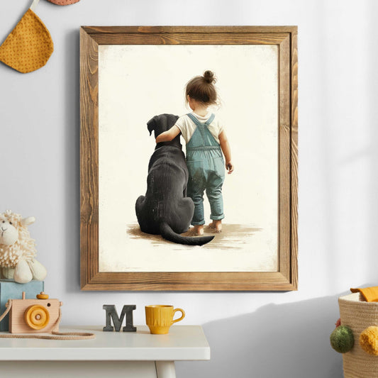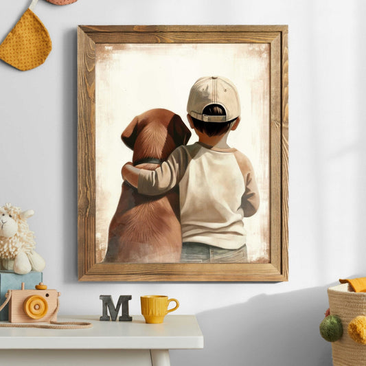 Our Kids with Dogs collection offers families an easy way to decorate with artwork that reflects companionship and everyday childhood adventures. With both digital downloads and printed formats, you can style nurseries, playrooms, and bedrooms practically, affordably, and in ways that adapt as your child grows.