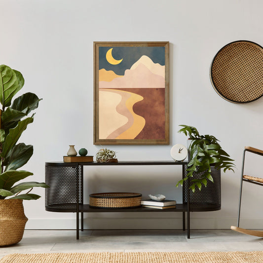 Moon Desert Landscape Wall Art – Boho Living Room Print