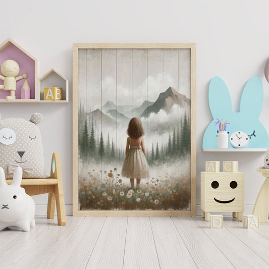 Girl Adventure Wall Art – Mountain Nursery Print for Toddler Room