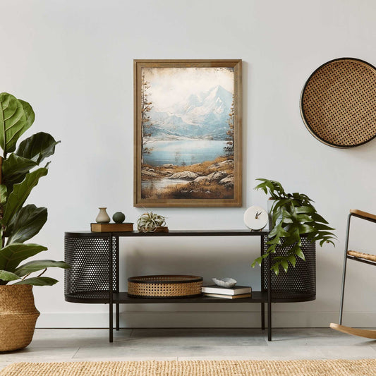 - In a reading nook, add a calm mountain print alongside soft lighting and seating