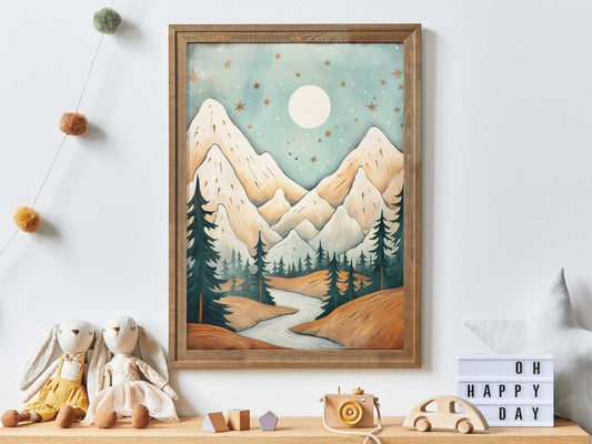Our budget-friendly digital files also make it simple to refresh rooms affordably. By printing new designs locally or online and keeping frames in bulk, you can rotate or replace mountain artwork as your child’s interests shift. This flexibility helps you keep their space updated without major expense.