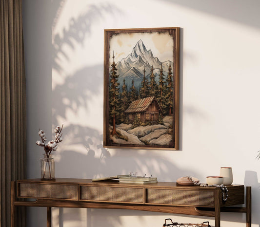 Rustic Mountain Cabin Wall Art – Nature Nursery Print