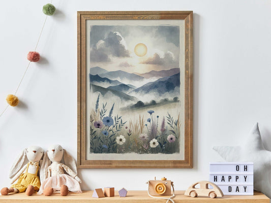 Wildflower Mountain Wall Art – Nature Girls Room Print