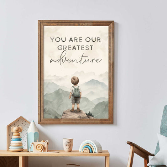 Mountain Quote Wall Art – Nature Adventure Print for Kids Room