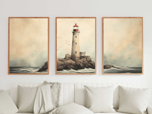 Nautical Wall Art, Rustic Sea Decor, Triptych Lighthouse Prints
