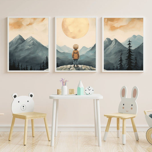 Mountain Wall Art – Nature Boys Room Decor • Set of 3